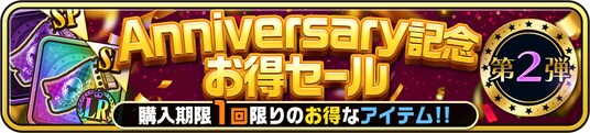 SPガチャチケットLRが目玉商品の超お得パック「Anniversary記念お得パック 第二弾」を、購入上限1回限りで販売します。