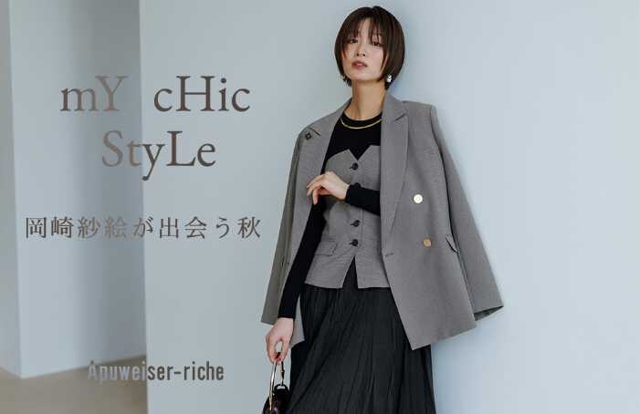 上品なトレンド感と女性らしい華やぎを両立したアプワイザー・リッシェの新作コレクション。岡崎紗絵さんが披露する5つのルックは、この秋の着こなしにすぐ取り入れたくなるスタイルばかりです。