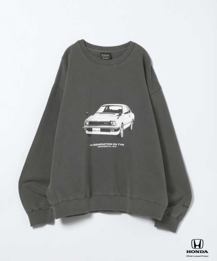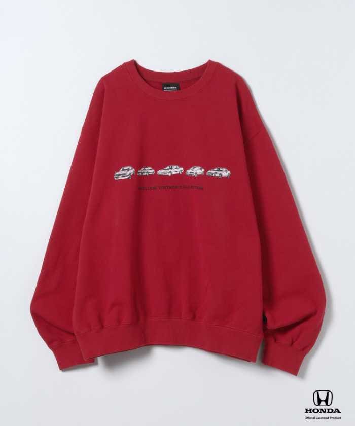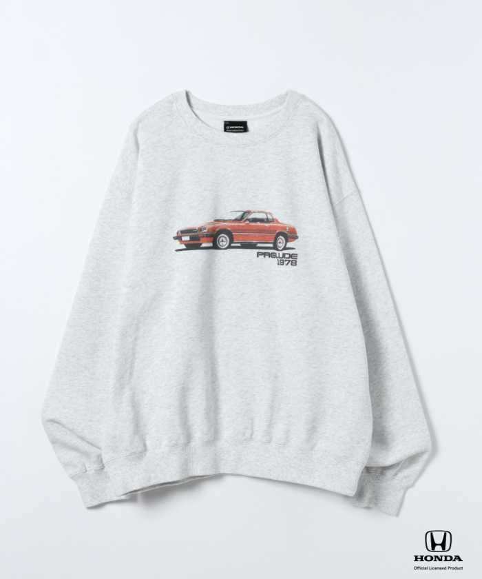 Honda(ホンダ)の名車「プレリュード」のグラフィックを大胆にあしらったスウェットプルオーバー。カラーはブラック、グレー、レッドの3色展開で、フリーサイズ8,250円(税込)。