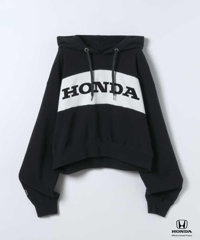 Honda(ホンダ)のロゴをフロントに大胆プリントしたショートフーディも登場。ブラックとレッドの2色展開でフリーサイズ8,250円(税込)です。