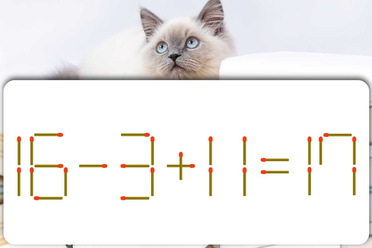 「6」のマッチ棒を1本、「3」に移動させて「9」を作り「15-9+11=17」にする。※解答は複数ある場合があります。