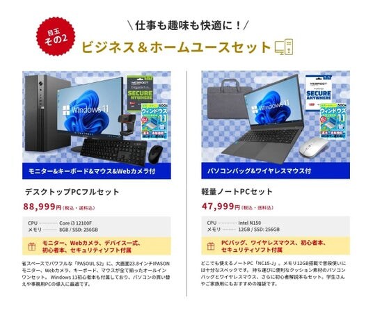 - 届いてすぐ使える!周辺機器もセットになった「軽量ノートPC福袋」