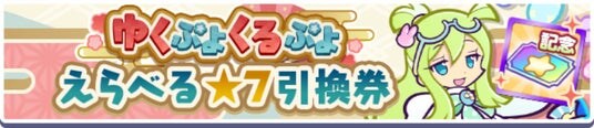 内容:配布期間中、ログインすると対象のぷよフェスキャラクターの中からお好きな★7キャラクターと交換できる「ゆくぷよくるぷよ えらべる★7引換券」がもらえます。