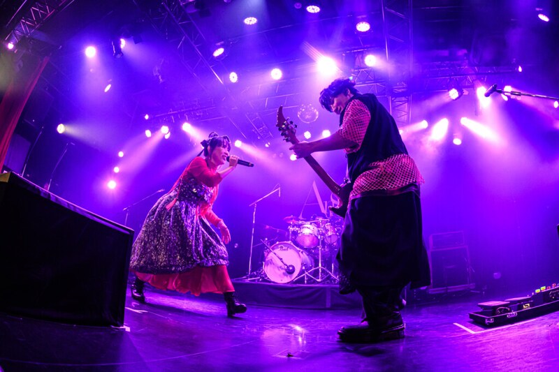 ファンクラブイベントを除くと久々になるライブハウスツアーとなったこのサーキット。国内8公演に海外2公演と長期にわたるツアーで、このファイナルは様々な経験を経た「Answer」を示す公演だ。じんぼちゃん、Buonoに続いてステージに登場したKATSUは、開口一番「いろんな意味で、ただいま~! 走り抜けようぜ!」とシャウト。3人のインストでオーディエンスを煽り、赤いロングスカートを纏いドレッシーな姿で表れたatsukoの「ファイナル横浜、行くぞ!」の掛け声で本編がスタートした。