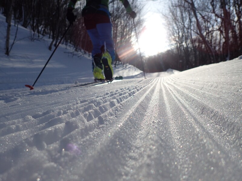 朝一、綺麗に整えられたピステンをリズミカルに走るように登る。悪天候でもスキー場が営業している限り、日常のエクササイズとして楽しめる。バックカントリーとはちょっと異なる達成感と爽快感を得られる