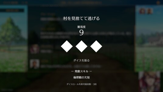 行動が成功するかどうかは、キャラクターの能力と行動の内容の組み合わせ次第。キャラクターのスキルやステータスに合致した行動であれば成功しやすく、無茶な行動は失敗してしまうでしょう。