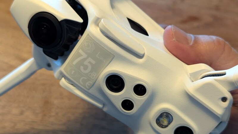 標準バッテリー装着時の本体重量が249gで、海外の多くの地域で飛行申請が不要なコンパクトサイズのドローン。標準バッテリーで最大24分の飛行が可能。持ってみて印象的なのがその軽さです。Insta360の360°カメラ「Insta360 X5」の重量が200gなので、プラス49gで360°カメラ搭載ドローンとして成立してしまうという軽量設計に驚かされます。