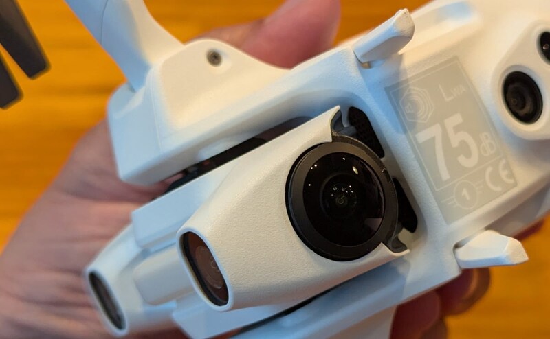 上下のカメラは機体の前を向いた2基のフロントビジョンセンサーと一体化したモジュールになっていて、カメラモジュールはジンバル機構で保持されています。