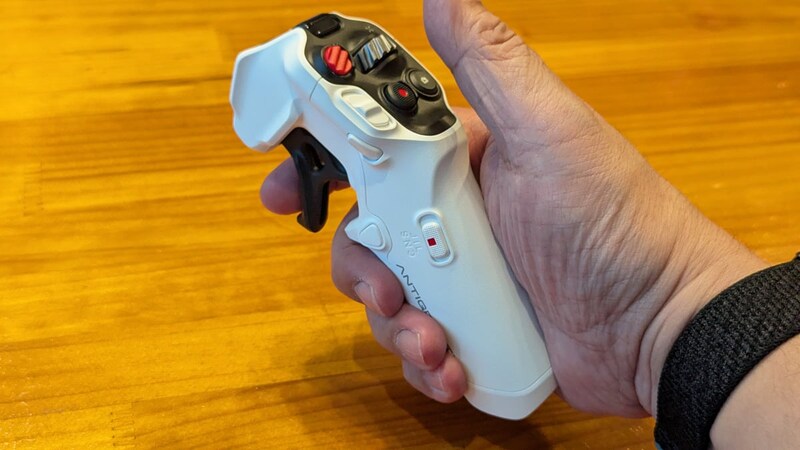 専用のスティック型コントローラー「グリップモーションコントローラー」が付属します。レーザーポインターのように機体の向く方向を指示しながらトリガーを引いて進む「フリーモーションモード」、操縦桿のように手首をひねる動作で精密にコントロールできる「FPV(1人称視点)モード」の2通りの操作に対応し、ドローン初心者でも手軽に飛ばせるのが特徴です。