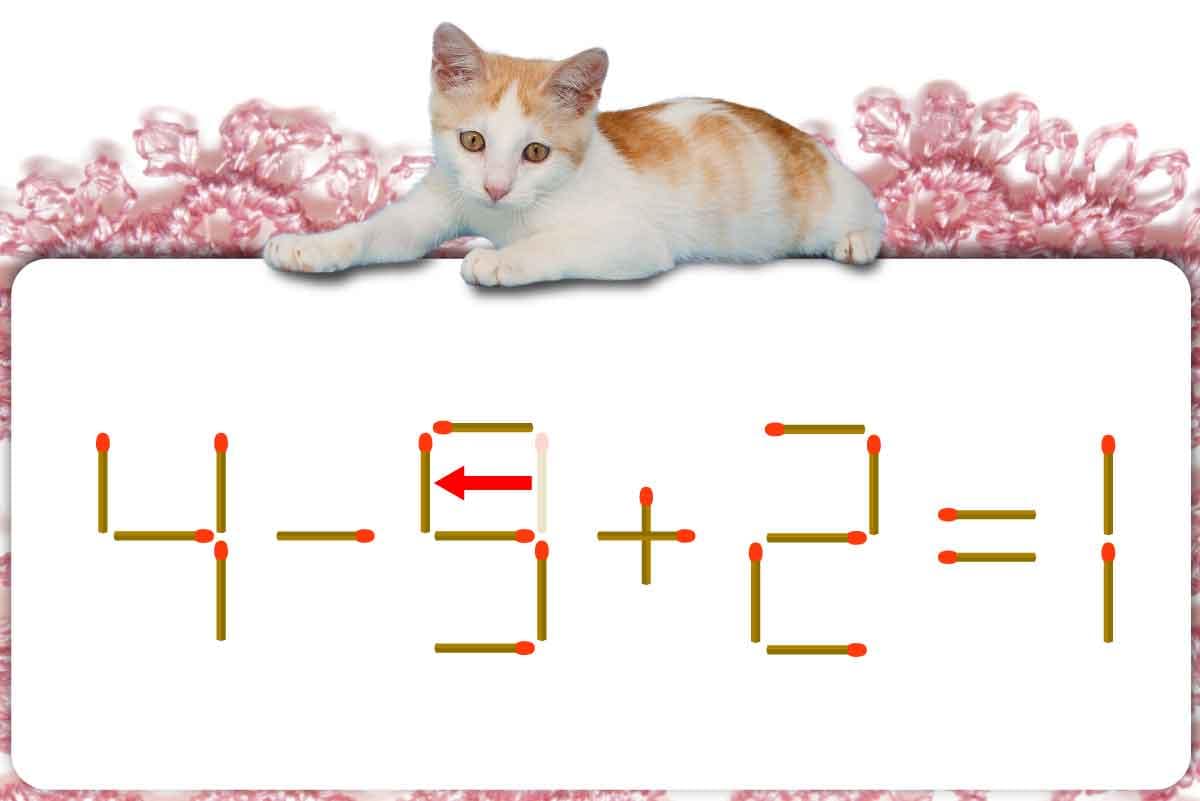 「3」のマッチ棒を1本移動させて「5」を作り、「4-5+2=1」にする。※解答は複数ある場合があります。