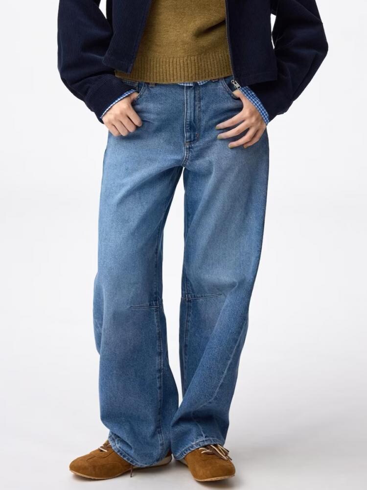バレルレッグシルエットのジーンズは、コーデにさり気ないトレンド感と抜け感をプラス。