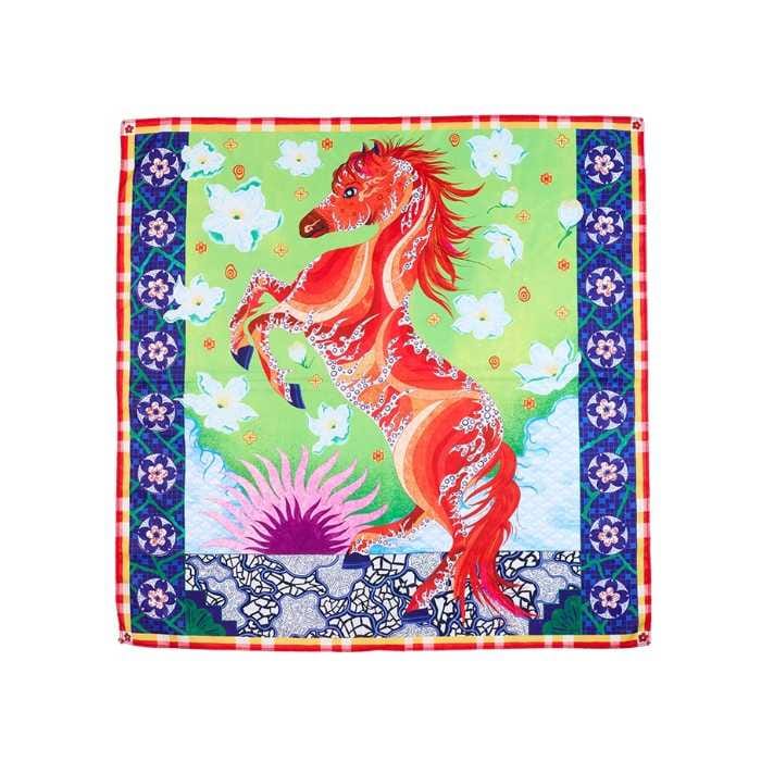 さらに『アンテイムドフレイムノットラップ』1,300円(税込)/70cm×70cmは、午を描いたJillとのコラボデザイン。※100%再生プラスチックボトル*1