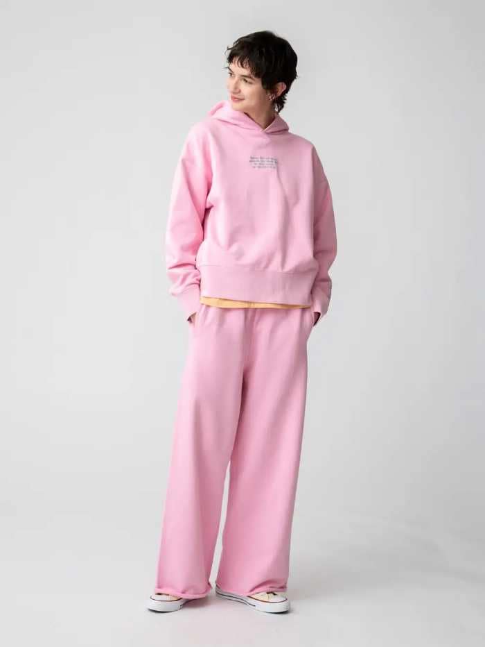 ブルー、ピンク、グレーの柔らかなカラーで、リラックスした春らしいシルエットのパンツもセットで展開。新しい年の始まりにふさわしい、温かい気持ちを込めたアイテムです。