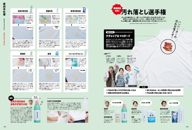 2025年ももう終わり。年末に自宅や仕事場の大掃除は終わりましたか? 今回の年末年始は最大で9連休ということで、結構長い! もし、特に予定がなく家でゴロゴロしているのであれば、愛用品のお手入れをしてみてはいかがでしょうか。今号では定番のデニムの洗濯とリペアから始まり、ブーツや革ジャンの革モノ、オイルドジャケットや60/40といった特殊素材、また腕時計やメガネといったアクセサリーのお手入れ方法を改めて解説。また「ハンバーガーを食べていたら、ケチャップとマスタードをTシャツにつけてしまったぁ」というシチュエーションを想定して、どの洗剤が一番汚れを落とせるのかを検証実験もぜひ参考にしてみてください。きれいになった相棒とともに新年を迎えましょう。