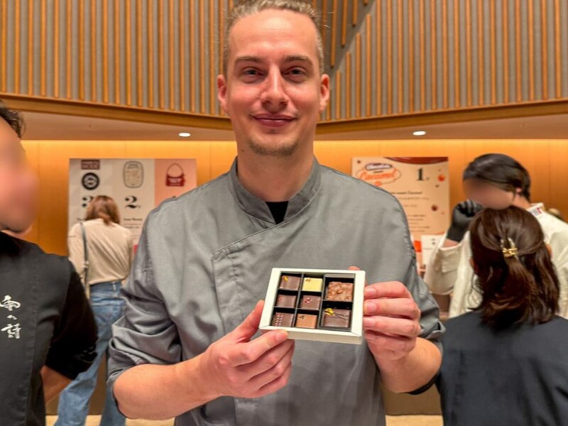 日本各地の素材を生かしたショコラが並ぶ「47チョコ列島」。なかでも注目を集めていたのが、2025年10月にパリで開催された世界最高峰の品評会C.C.C.で外国人枠アワード賞「完璧賞」を受賞した「アイカコバヤシ」です。
