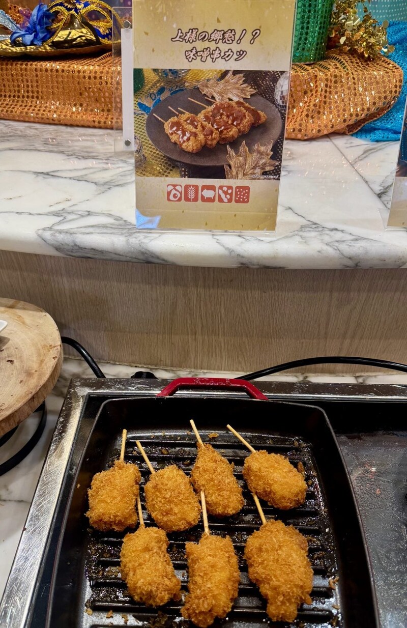 松平健さんの出身地・愛知県にちなんだ味噌カツなど、マツケンサンバや松平さんにちなんだメニューがいただけることもファンにはたまりません。デザートも、サンバの国=ブラジル料理で代表的なフルーツを使用したものから三色団子まで充実しているので、たっぷり楽しめちゃいます。