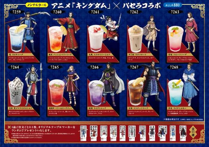 アニメ「キングダム」とカラオケパセラの期間限定コラボがついにスタート!前期・後期で異なるメニューが登場し、対象メニュー注文で「オリジナル名言キャラスタンド(全11種)」がもらえる特典も魅力です。予約なしで利用でき、1名から気軽に参加できるのも嬉しいポイント♪テイクアウト対応店舗もあり、ファンなら見逃せない内容に。熱い名台詞とともに、コラボメニューを思いきり堪能して♡