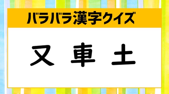 バラバラになったパーツ「又・車・土」を組み合わせてできる漢字は何? 各パーツの大きさは同じとは限らないので、大きくしたり小さくしたり、いろんな組み立て方を試してみましょう。