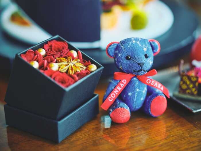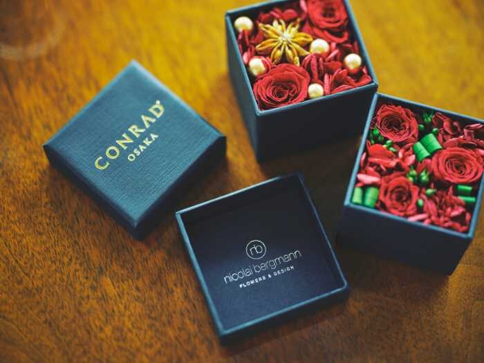 数量限定で「プリザーブドフラワーボックス1個」と「コンラッドホリデーベア1個」が付いた特別プラン(13,500円)や、12月18日~25日の「クリスマスフラワーボックス」、12月26日~3月1日の「フラワーボックス」も登場。