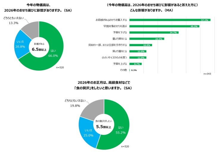 ファミリーマートが実施した調査では、「物価高が2026年のおせち選びに影響を与える」と答えた人が6.6割にのぼった。その一方で、「贅沢な食材を楽しみたい」と回答した人も過半数を超えており、消費者は“節約しながらも特別感は欲しい”という複雑なニーズを抱えているようだ。こうした声に応えるべく、今年のファミマおせちは、価格以上の満足感を得られるよう工夫された商品が目立つ。