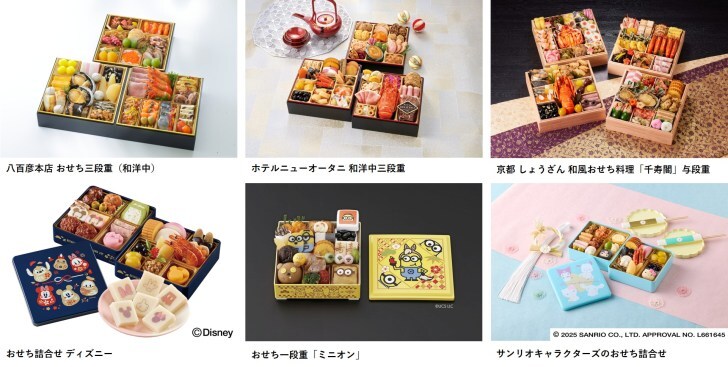 また、老舗仕出し料理店「八百彦本店」や、「ホテルニューオータニ」「京都しょうざん」などの名門ホテル・料亭が監修した本格おせちもラインアップ。さらに、ディズニーやミニオン、サンリオといったキャラクター系おせちも取り揃え、家族世帯にも嬉しい選択肢が増えている。