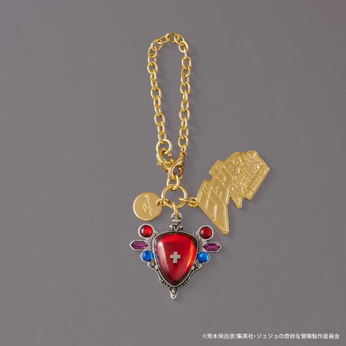 「エイジャの赤石」チャーム(5,500円)は美しい赤石のモチーフを金具で表現し、“JOJO”の世界観を手元に添えることができます。
