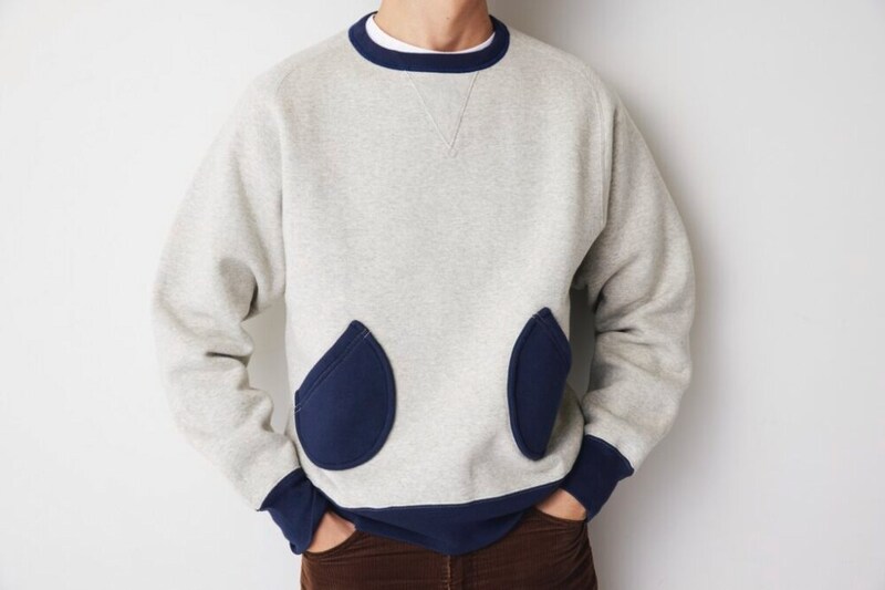 スウェットシャツの歴史のなかで、デザインが多様化した1930年に多くみられるボクシンググローブ型のポケットが付く。