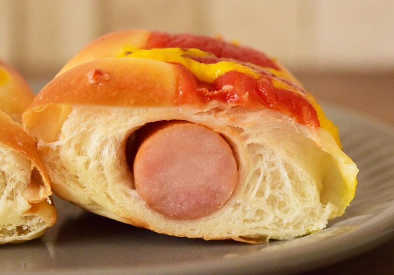 ふんわりとしたパン生地の上にソーセージがのり、味付けはトマトケチャップと粒マスタードマヨ。シンプルながらも王道感のあるソーセージパンです。