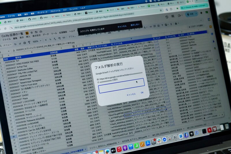 さらにGASを使って、画像ファイルの情報をスプレッドシートに展開し、構造化されたデータベースを作る。