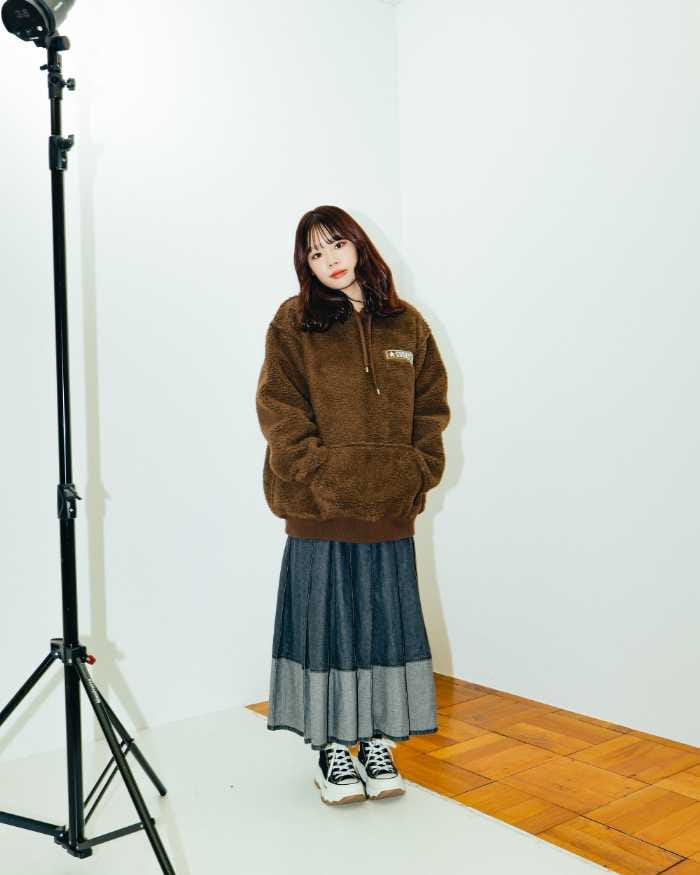 【SING GIRL BONDING BOA HOODIE】(27,500円)はbrown/black/grayの3色展開。刺繍の厚みや糸の光沢まで丁寧に作り込まれ、立体的な陰影がグラフィックを際立たせます。