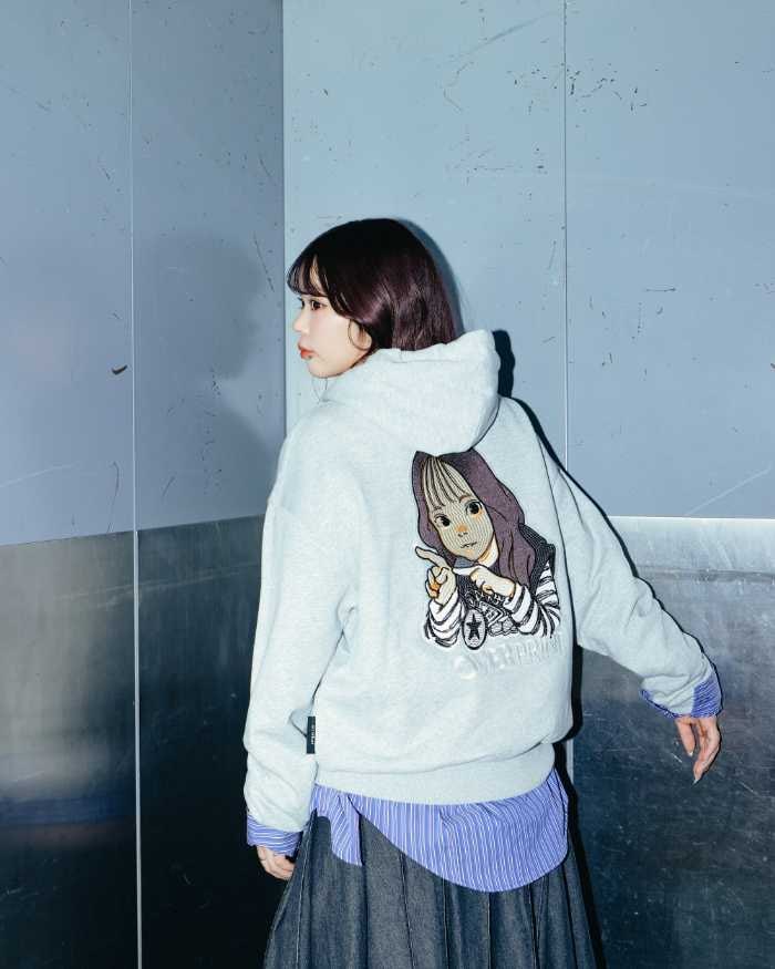 【SING GIRL HOODIE】(18,700円)はnavy/grayの2色展開で、よりデイリーに着こなしやすい一着。どちらもストリートムードをまといながら品よく仕上げられています。