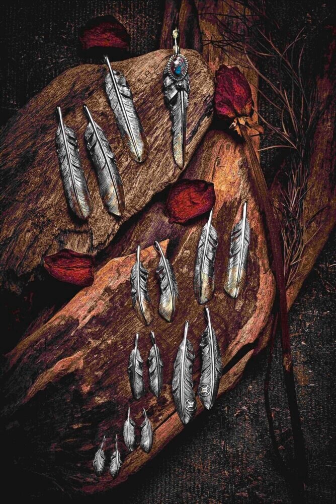K18 Eagle Crest / Point Gold Feather / TQ Black Web Matrix / Gold Solder