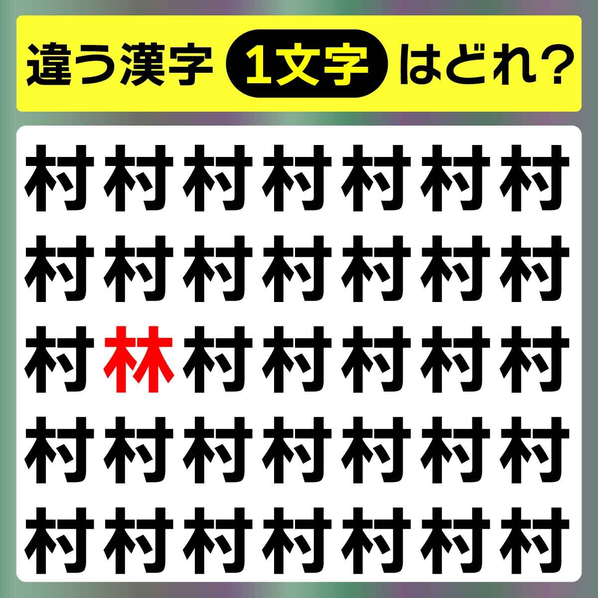 毎日配信中「毎日脳トレ」の時間です! 本日のクイズは「漢字のまちがい探し」に挑戦♪ 同じ漢字が並んでいるように見えますが、実は1つだけ違う漢字が……。よ~く探してみてください!