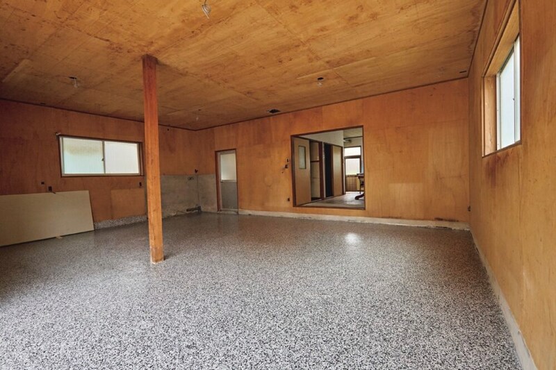 この物件がある地域は旧い漁師街であることから、元々は漁に関わる道具が保管されていたのかもしれない広い土間スペース。壁はべニアが張ってあるだけの一般的な倉庫然としたところだったが、カントリーベースの扱っている材料を使ってリノベーションしたところ、以前とは違う場所かと思うほどに変化。