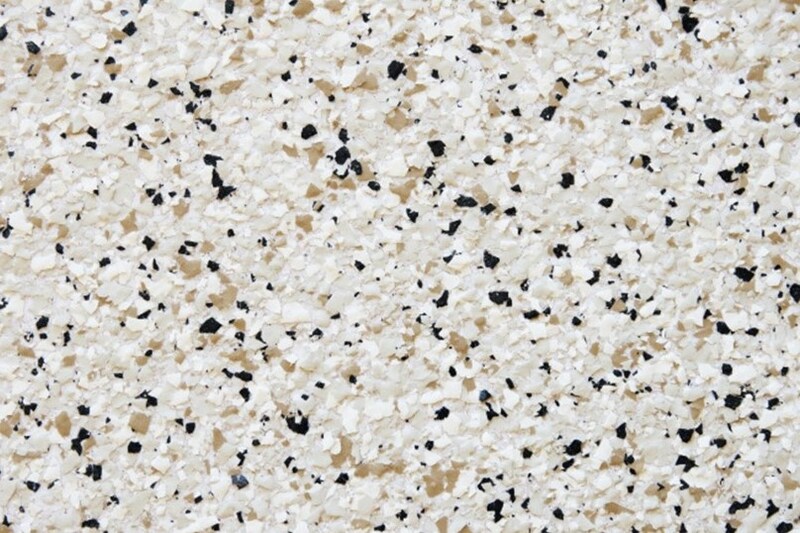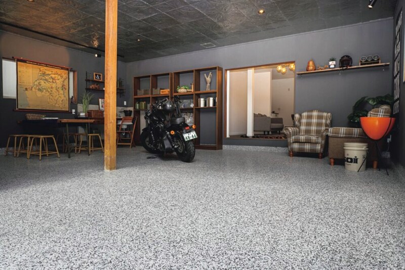 アメリカの最先端床材技術によって開発されたフレークフロアコーティングシステムである「ポリフレーク」。ガレージや店舗、オフィスなどに最適。施工は1日で完了し、長期間美しさが続く。