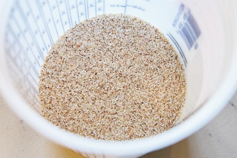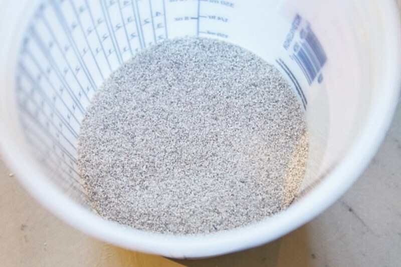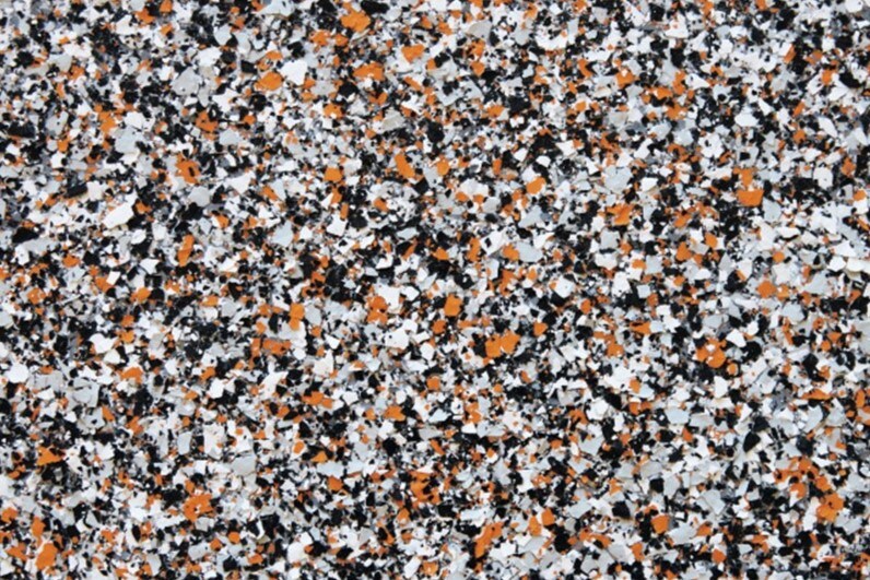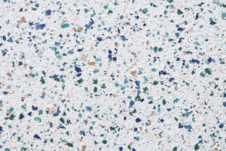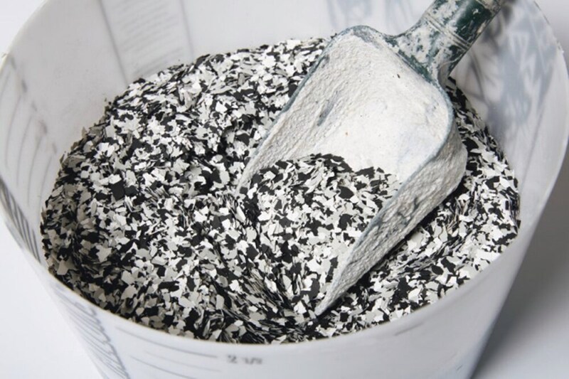 ポリフレークの施工に使用するフレーク。ポリアスパーティックをベースに塗った上に撒き、定着させる。