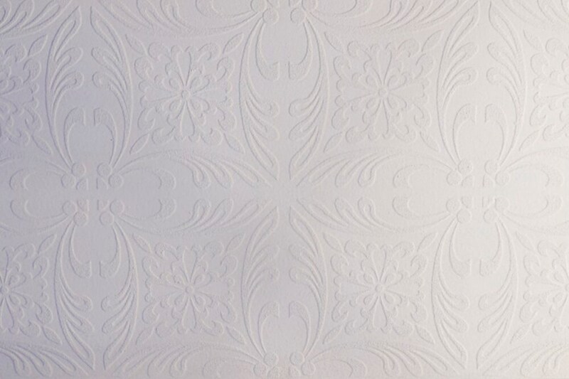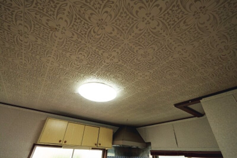 天井の柄付きの壁紙にカルミュールを塗布。柄の凹凸はそのままに、表面の質感だけをリニューアル。
