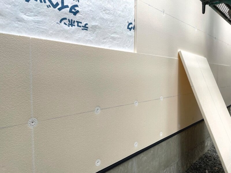 こちらの物件には外壁に使用する外断熱材「EPS」を採用している。断熱性に優れているので夏涼しく、冬暖かい。