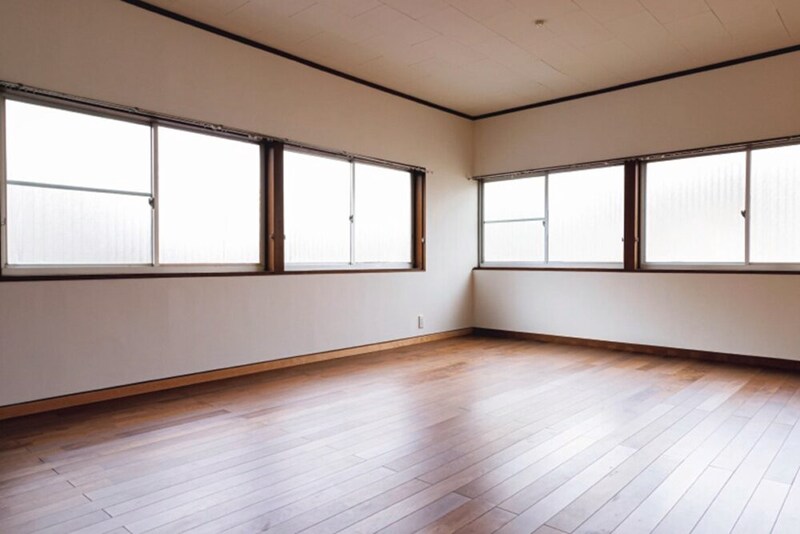 元はクロス貼りの壁だったが、所どころ劣化で剥がれてしまっていたため、カルミュールを塗ってリニューアル。床のフローリングも敷き直して明るくシンプルな部屋に仕上げた。