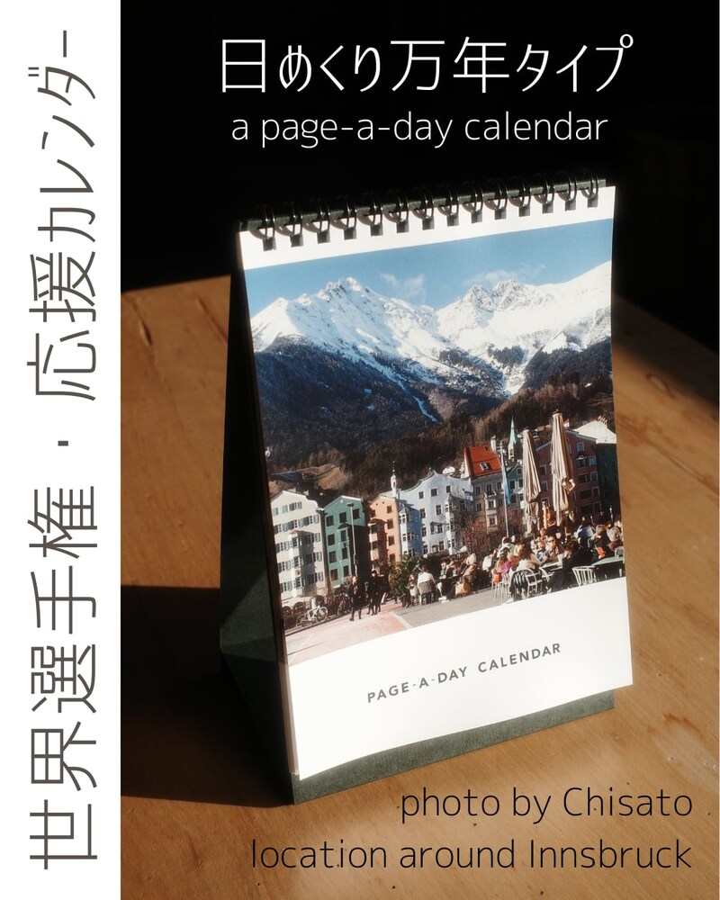 1)笹田選手が自ら撮影したスナップ写真を使用した「2025年 遠征応援カレンダー」の購入