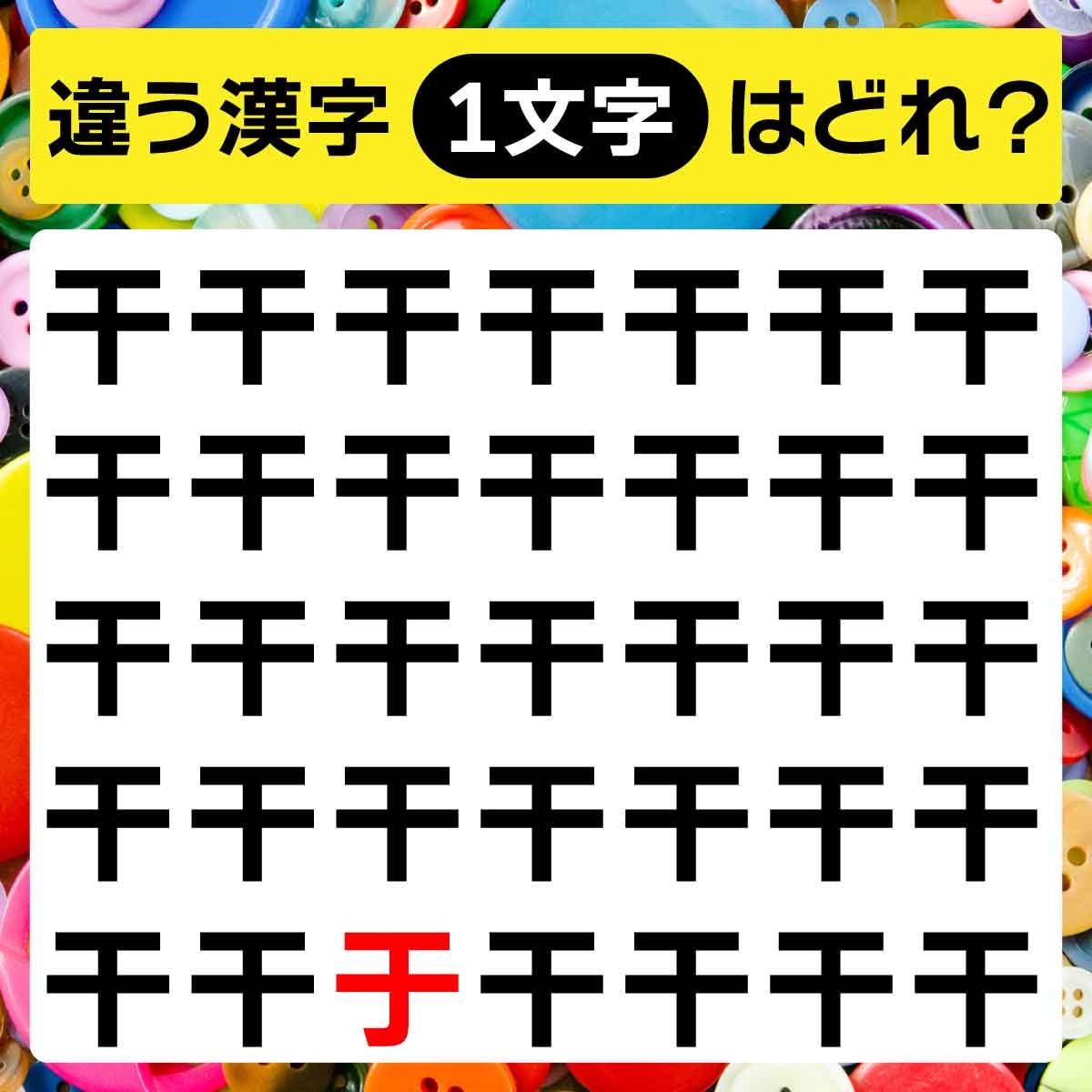 違う漢字は、一番下の列、左から3番目の文字でした!