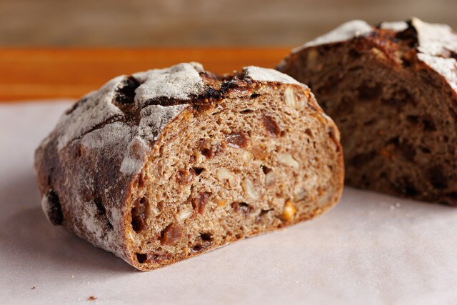 有機ライ麦と小麦を合わせた生地に、クルミや有機いちじく、レーズン、オレンジピールがたっぷり入った「メランジェ」は、どっしりとボリューム満点。自家製の天然酵母を使い、もっちりと食べ応え満点の一品に仕上がっています。