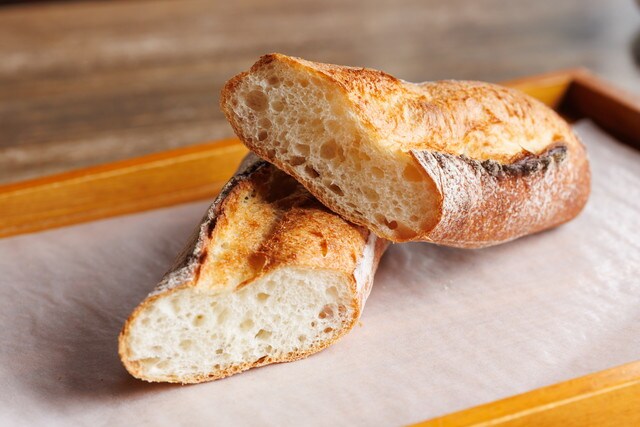 「バケット」は、シンプルだからこそ「ドーシェル」ならではの力強い味わいが堪能できます。バターやジャムをつけても、オープンサンドなどにしても、パンのおいしさがしっかり感じられるはず。