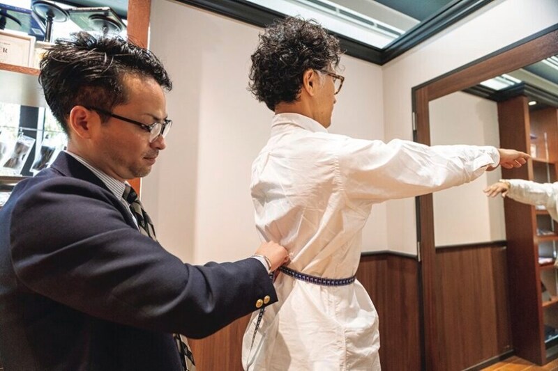 ゆったりフィットのボックス型でパッドや芯が控えめの非構築的なタイプと、逆にウエストに絞りを入れてジャストフィット&かっちりと構築的なものに大別されるが、オーダーの利点を活かしてやや後者寄り。前ダーツが入っていないのに、身体にフィット! なんでなの? オーダー価格64,900円(問い合わせ/麻布テーラープレスルーム Tel.03-6273-1840)