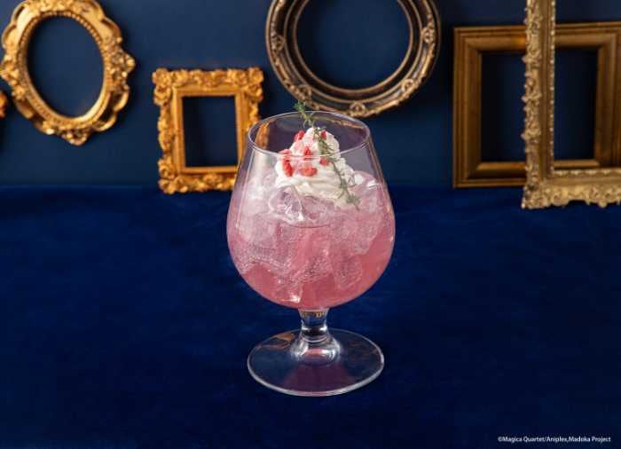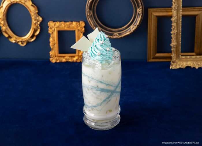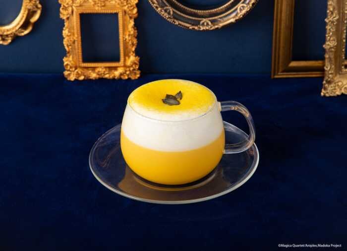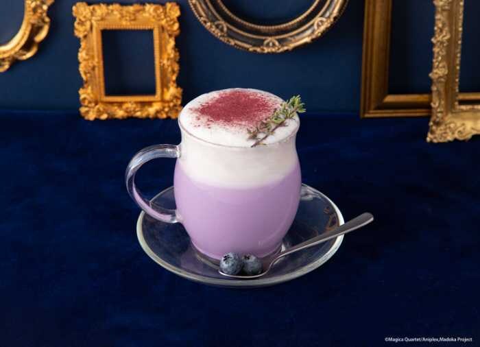 ピーチ風味の〈鹿目まどか ピーチソーダドリンク〉、ブルーベリーの香りが楽しめる〈暁美ほむら ブルーベリーホットドリンク〉、パンプキンを使った〈巴マミ パンプキンホットドリンク〉。