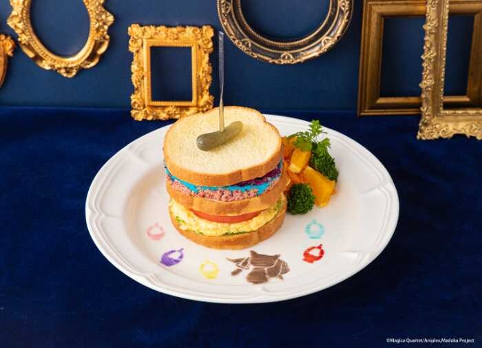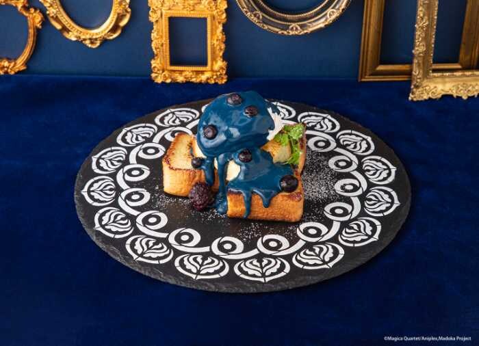 ほかにも、5色のソウルジェムをあしらった〈願いをのせた魔法少女サンド〉(1,690円)や、「ワルプルギスの夜」を表現した〈夜の戯曲フレンチトースト〉(1,590円)。
