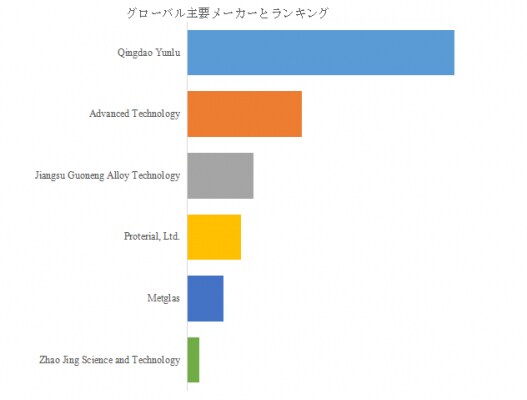 世界的な主要製造業者には、Qingdao Yunlu、Advanced Technology、Jiangsu Guoneng Alloy Technologyなどが挙げられる。これらトップ3企業は2024年時点で売上シェア約42%を占め、業界の集中度を示している。Qingdao Yunluは高周波トランス用ナノ結晶コアで優位性を持ち、Advanced Technologyは電動車向け高飽和磁束密度材料で評価されている。Jiangsu Guoneng Alloyはコスト効率と一貫生産体制を武器に市場拡張を進めている。また欧州ではHitachi Metals(現Proterial)やVACなどの老舗メーカーが技術面で高い信頼を維持し、北米ではMetglasがトランス用途に特化した供給体制を整えている。各社は特許ポートフォリオと地域拠点の最適化に注力し、競争軸は「性能×量産性×コスト安定性」へと移行している。