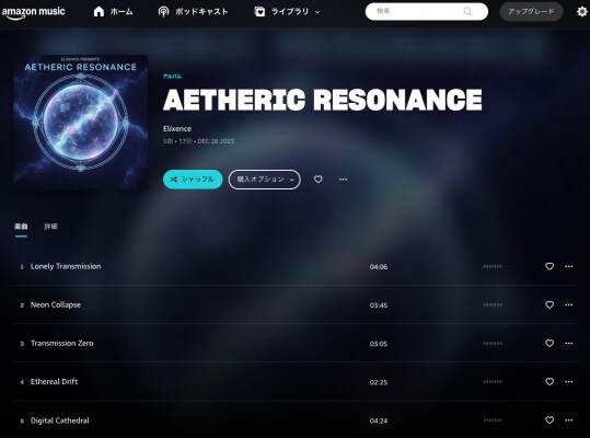 Webマーケティング・ブランディング支援事業を展開するElixence(代表:横山祐樹)は、音楽プロジェクトとしての処女作となる1stアルバム『AETHERIC RESONANCE(エーテリック・レゾナンス)』を、YouTube Music、Amazon Music等の各種音楽ストリーミングサービスにて配信開始いたしました。(Spotifyは後日配信予定)