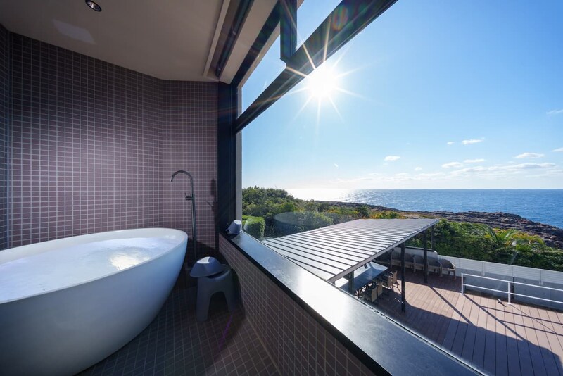 白浜の海を一望できるオーシャンビューが完備されているので、高台から望む太平洋や水平線、徐々に沈んでいく夕日などを全身で体験できるところが魅力。最大32名での宿泊ができ、広々とした開放的なリビングダイニングがスタンバイ。寝室はいくつかに分かれており、プライベートも確保して団らんを楽しめますよ。