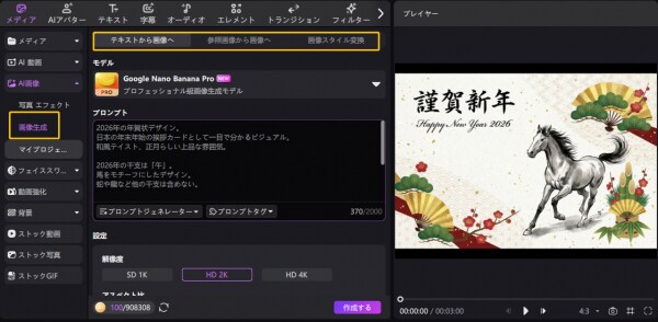 HitPaw Edimakor には、AI画像生成(テキストから画像生成)機能が搭載されています。